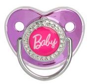 Роскошная пустышка со стразами Соска со стразами ортодонтической формы скошенная. Современный и модный дизайн пустышки со стразами не оставит равнодушным никого из взрослых и детей. Очень стильная и модная детская соска повторяет форму соска материнской груди во время кормления. Даже детки с зубами могут пользоваться ей, ведь она очень плотная.