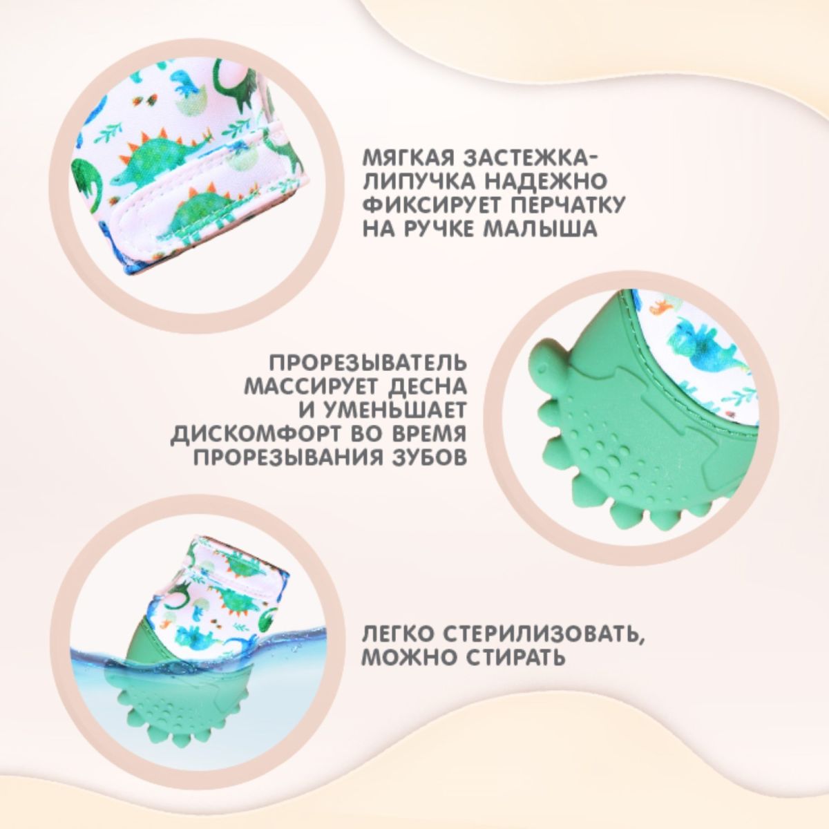 Рукавичка-прорезыватель «Динозаврик» — это удобное решение для массажа дёсен, которое надёжно фиксируется на ручке ребёнка. Благодаря своей конструкции, она помогает снять зуд и делает процесс безопасным и комфортным.