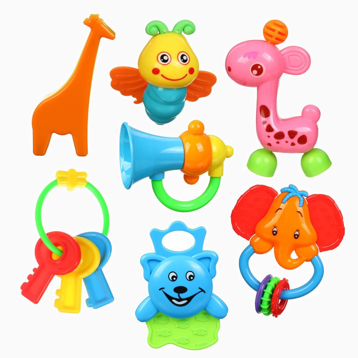 Привлекательный дизайн: Наши погремушки специально разработаны для привлечения внимания малышей. Яркие цвета, забавные текстуры и уникальные формы - все это привлекает внимание ребенка и помогает развивать его сенсорные способности