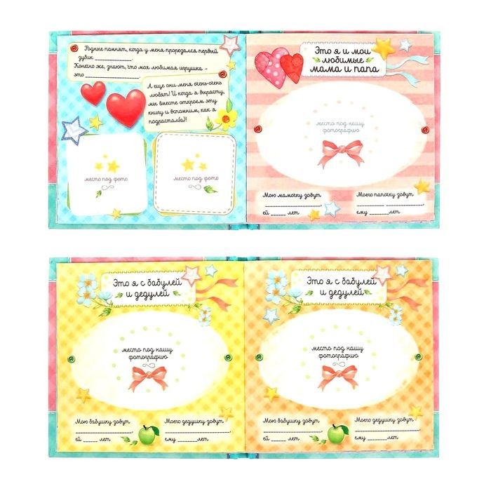 Детки быстро растут, а так хочется запомнить каждый момент их жизни. В этом мамам и папам поможет уникальная первая книга малыша.