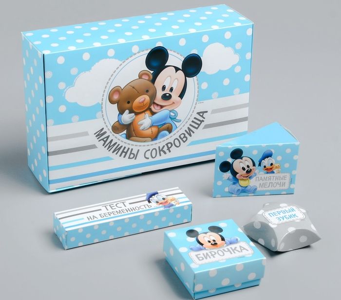 Они упакованы в коробочку-пенал, содержимое не выпадет и не потеряется. Любимые друзья из мультфильмов студии Disney на обложке сберегут эти бесценные сокровища, которые с огромным интересом будет рассматривать малыш, когда подрастёт.