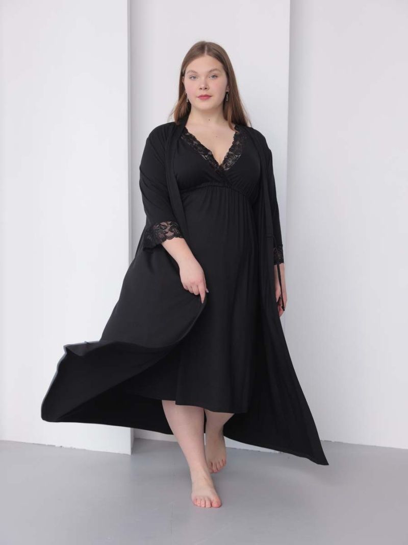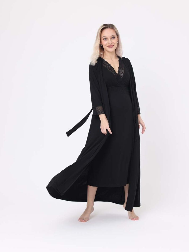 Hunny mammy - качественная одежда и белье для беременных и кормящих. Халат с сорочкой длины макси - это удобная домашняя одежда, которая позволяет чувствовать себя комфортно и уютно в любое время дня. Изготовленный из качественной мягкой вискозы, этот женский комплект станет незаменимой вещью в гардеробе. Ночная сорочка украшена кружевом, кокетка выполнена на запах, что делает её еще более удобной для молодых мам. Халат украшен кружевом, выполнен на запах. Кроме того, этот пеньюар отлично подходит для отдыха дома, чтения книг или просмотра фильмов в уютной обстановке. Независимо от того, как Вы проводите свое время дома, халат с сорочкой - это отличный выбор. Он сочетает в себе стильный дизайн, превосходное качество и удобство в использовании, что делает его идеальным решением для тех, кто ценит комфорт и стиль.