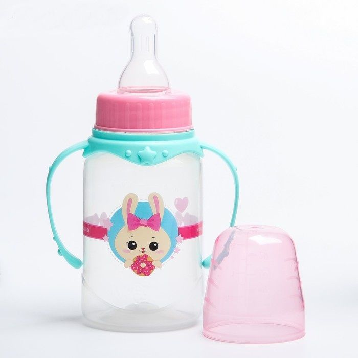Бутылочка для кормления «Зайка Полли» 150 мл цилиндр, с ручками