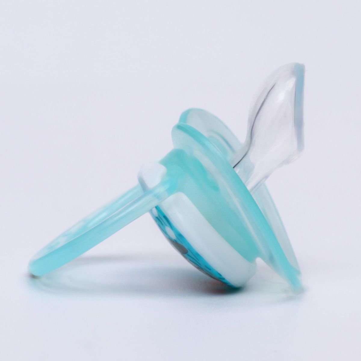 Соска пустышки силиконовая и имеет анатомическую форму диска, специальные вентиляционные отверстия на пустышке улучшают циркуляцию воздуха не раздражают кожу малыша и не оставляют следов и опрелостей. Создана для удовлетворения естественного сосательного рефлекса малышей. Пустышка анатомической формы имеет немного сплюснутый сосок, благодаря чему прилегает к языку.
