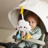 Игрушка-подвеска Облачко отлично подойдет в качестве первой развивающей игрушки для детей. Качественная и безопасная подвеска занимает внимание малышей на долгое время: она хрустит и шуршит. Наличие большого количества разных элементов стимулируют развитие мелкой моторики и тактильных ощущений у малыша. Облачко хрустит, звенит и пищит, тем самым надолго занимает внимание малыша, помогает родителям уделить время своим делам. Удобный универсальный крепеж в виде прищепки или разъемного кольца позволяет закрепить подвеску на коляску, кроватку или детское автокресло.