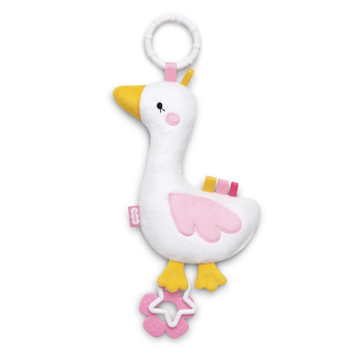 Состав: текстильные материалы, синтепух, хрустящий элемент, погремушка, прорезыватель, разъёмное колечко