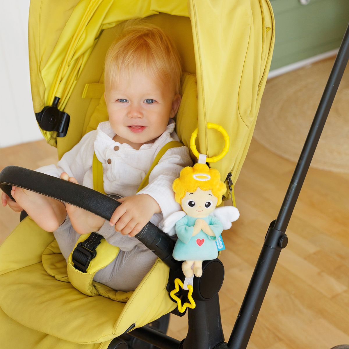 Уникальная подарочная игрушка подвеска Ангел от российского производителя – фабрики «Мякиши». Защитит вашу кроху от всего! Нежная и трогательная – она точно станет первой любимой вещью для малыша. Ваш кроха будет с удовольствием шуршать и изучать не только образ ангелочка, но и развивать тактильные ощущения, знакомясь с фактурой тканевых материалов, ведь это еще и шуршащая мягкая игрушка – у подвески шурщашие крылышки. Также есть прорезыватель-звёздочка, он мягкий, эластичный, и его приятно грызть, а внутри тела – звонкий бубенчик! Аналогов таких игрушек новорожденного в виде ангела нет! Может ассоциироваться у родителей с ангелом-хранителем, особенно, если подвесить у колыбельки.