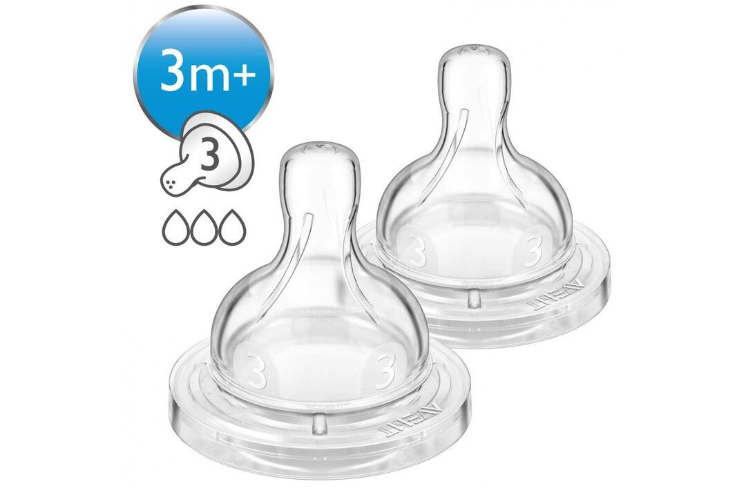Соски Philips Avent серии Anti-Colic имеют разную скорость потока — предпочтительная скорость зависит от возраста и индивидуальных особенностей малыша. Мы рекомендуем менять соску каждые 3 месяца в гигиенических целях. Используйте бутылочки Philips Avent серии Anti-Colic только вместе с сосками Philips Avent серии Anti-Colic.
