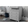 Пеленальная доска с защитными бортиками на комоде съемная, ее легко можно передвигать в любую сторону комода или полностью убрать когда ребенок подрастет. Использование комода облегчит родителям уход за ребенком во время гигиенических процедур, также поможет в экономии места и организации порядка в детской комнате. Комод устанавливается на 4 поворотных прорезиненных колеса, 2 из которых со стопорами - это дополнительное преимущество, мама при необходимости может перемещать комод по комнате с вещами, что облегчает процесс уборки или перестановки.