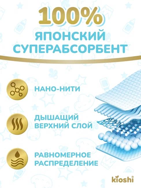 Премиальные подгузники для новорожденных Киоши размера NB сочетают в себе