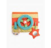 После того, как конструкция собрана, можно положить шарик-погремушку на верхний этаж и смотреть, как он скатывается вниз по пирамидке-лабиринту.
