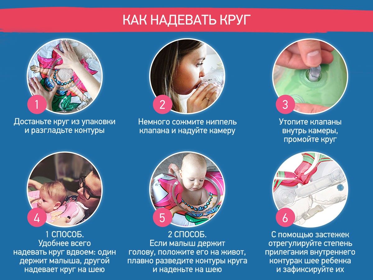 Круг для купания новорожденных предназначен для водных процедур с самого рождения. C этим кругом водные процедуры пройдут весело и просто. Ваш малыш будет свободно держаться на воде, шевелить ручками и ножками, при этом нос и рот будут защищены от попадания воды, а звенящая погремушка внутри развеселит вашего карапуза. Круг оценят родители, так как им не придется все время стоять в согнутом положении. Надежная фиксация обеспечивается двумя удобными регулируемыми липучками и карабином. Места крепления застежек дополнительно усилены. Круг имеет мягкий внутренний шов, который не будет натирать шею. Анатомическая выемка для подбородка позволяет удобно зафиксировать голову. Может использоваться в домашних условиях и на открытых водоемах глубиной не более 1 метра. В конструкции предусмотрен ниппель с обратным клапаном, который удержит воздух даже с открытым колпачком.