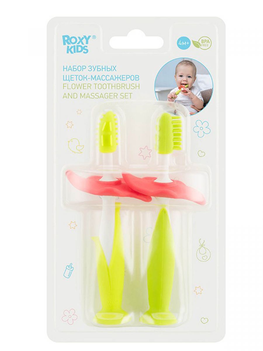 RTB-001 ROXY-KIDS набор зуб.щетки-массажеры зелен.