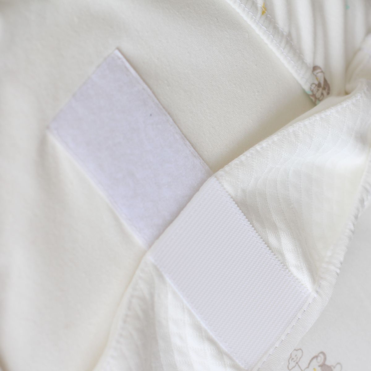 У одеяла есть специальные почти бесшумные мягкие застежки-липучки, которые позволяют легко зафиксировать одеяло так, чтобы ребенок был надежно укрыт. При этом малыш не сможет самостоятельно раскрыться или случайно накинуть одеяло себе на лицо. Мягкий хлопок дружелюбен к коже ребенка;