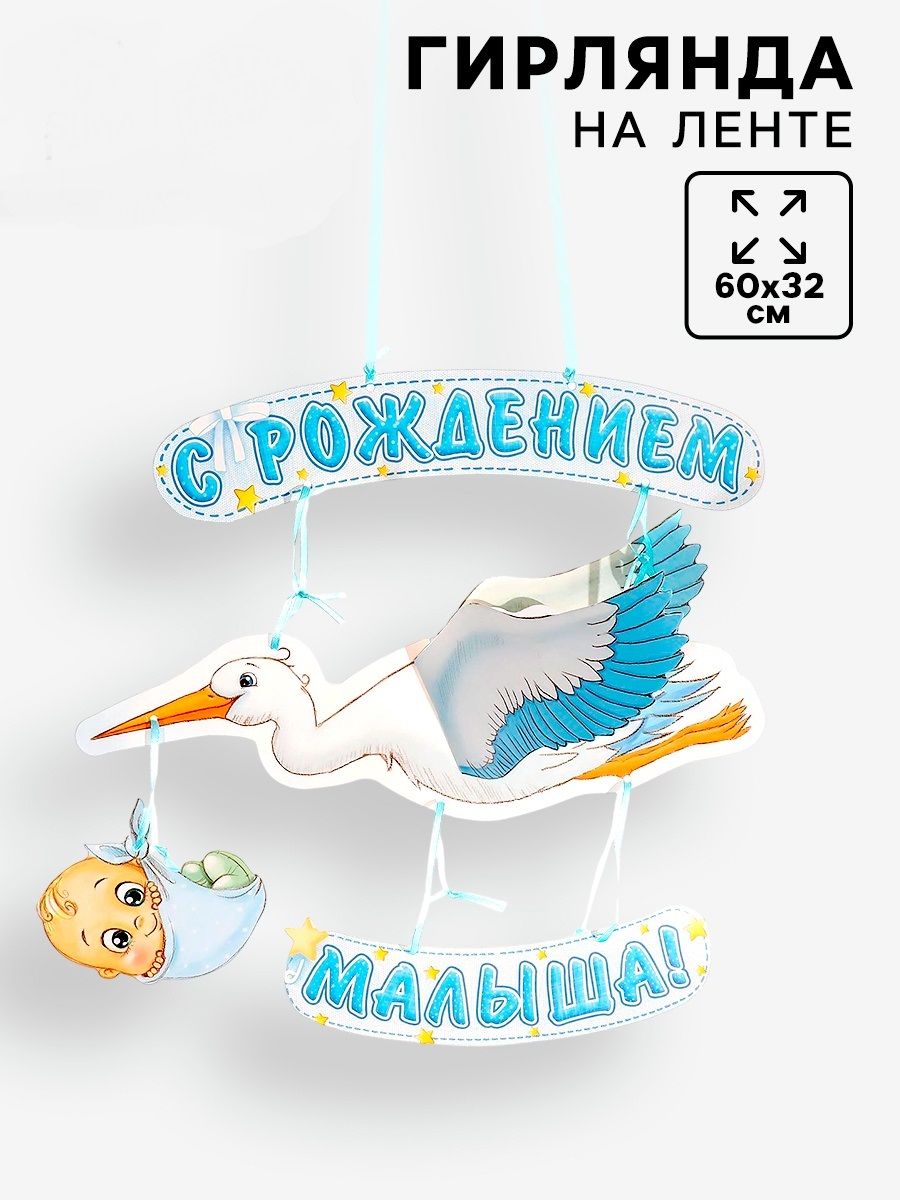 Рождение малыша — большая радость для всей семьи. Хотите оригинально оформить зал или комнату? Гирлянда бумажная «С рождением малыша!», объемная — отличное украшение торжества. Аксессуар из картона с яркой двусторонней печатью и дополнительными элементами на ленте создаст атмосферу праздника и радости. Чтобы украшение стало объёмным, вставьте дополнительный элемент в основу крест-накрест.