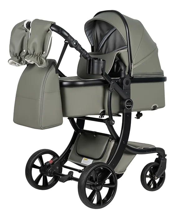 Коляска выполнена из экокожи Premium-класса с водоотталкивающей пропиткой, которая не только придает изделию изысканный вид, но и обеспечивает долговечность и простоту в уходе.