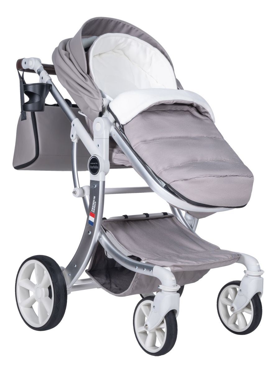 Комплектация: вместительная сумка-органайзер, подстаканник, дождевик, москитная сетка, утепленный флисовый конверт для ребенка, матрасик-вкладыш