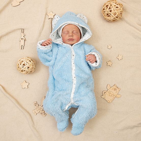 Мягкий и пушистый комбинезон "Плюшик" такой приятный и славный. Снабжён удобной застежкой на кнопках, капюшон с прикольными ушками.
