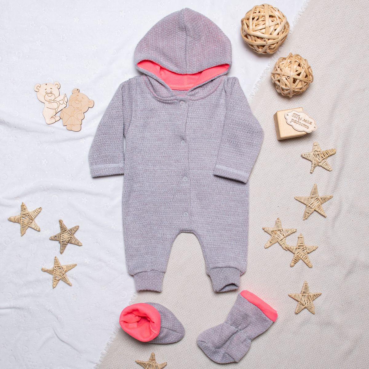 Ткань мягкая вязка с отделкой капюшона и пинеток тканью кашкорсе (розовый, оранжевый)