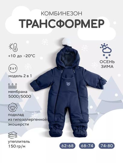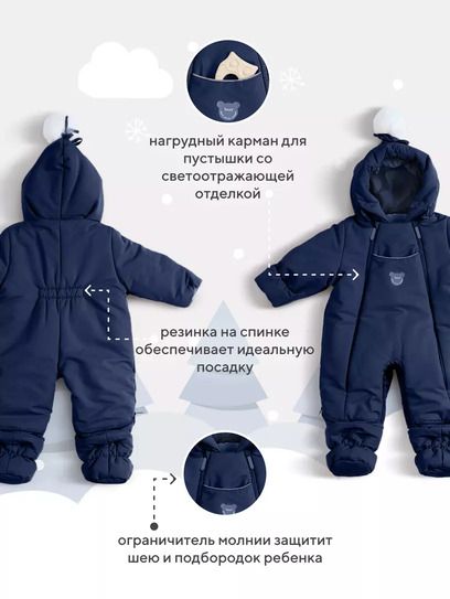 - регулируемая глубина капюшона позволяет использовать любые шапки в тандеме с комбинезоном