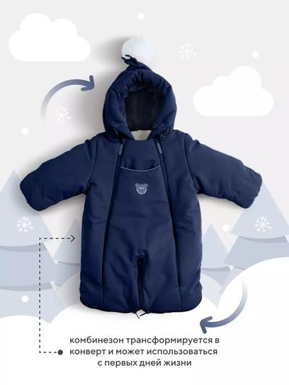 - легко трансформируется из конверта с рукавами в комбинезон с полноценными штанинами