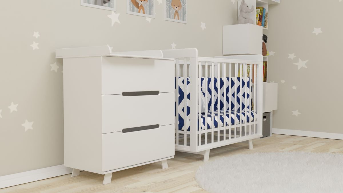 Для новорожденного ребенка на комод устанавливаются специальные бортики, которые превращают комод в пеленальный.
