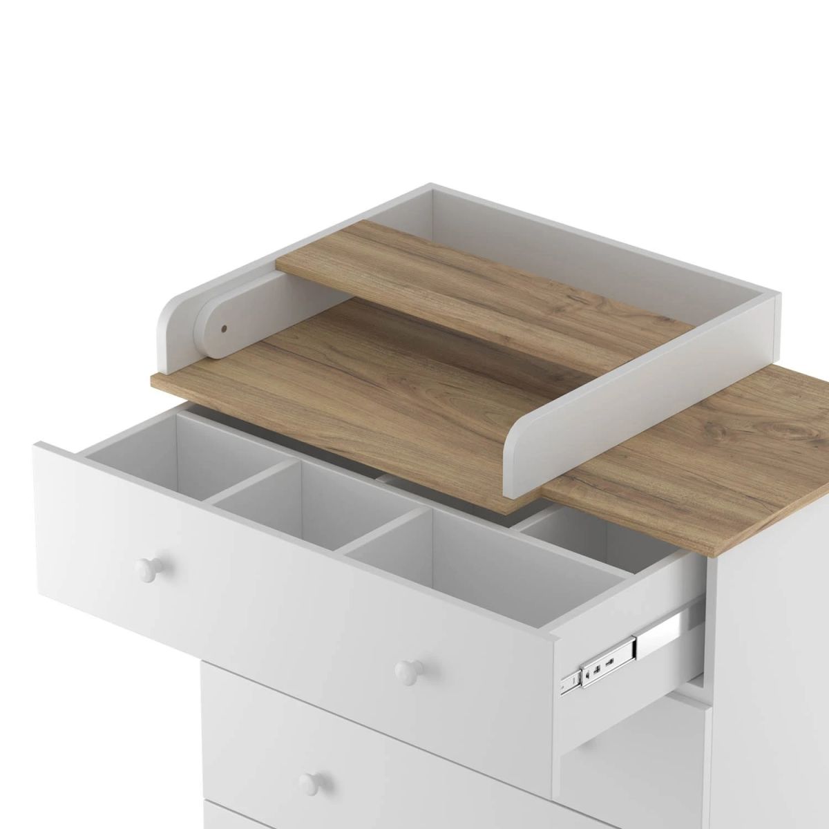 Верхний ящик оснащён органайзером для удобства хранения мелочей и детской косметики.