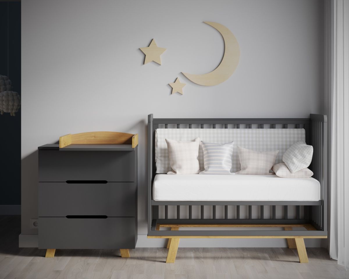 Верхние планки оснащены силиконовыми накладками, чтобы малыш не повредил первые зубки и поверхность кроватки.