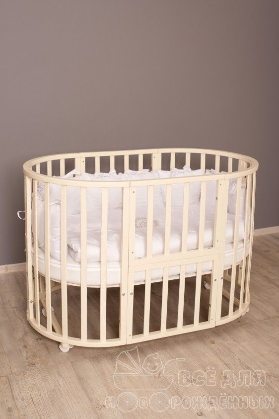 - Далее корпус легко трансформируется в уютную овальную кроватку размером 125*75 см