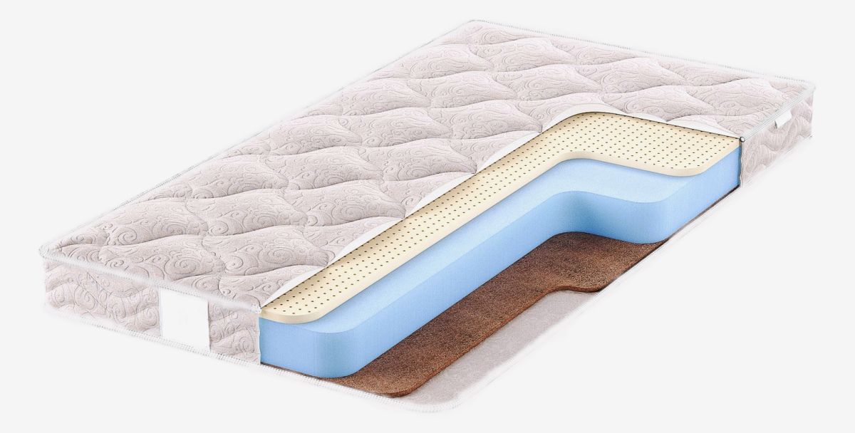 Основу матраса составляет средне-жесткий наполнитель форплит (находится между кокосовым и латексным листами)