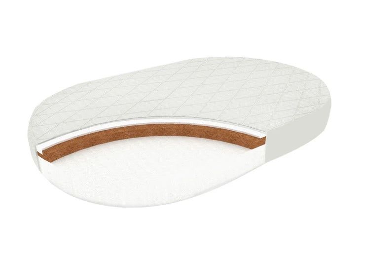 Беспружинный двусторонний матрас Farfello "Oval Lux" разработан с применением новейших технологий и материалов, подходит для кроватки овальной формы. Матрас разработан для новорожденных детей и имеет разную жесткость сторон, также он является экологически чистым изделием, в производстве которого не используются клеевые материалы. Менять жесткость спального места можно повернув матрас на другую сторону. С одной стороны матраса находится жесткая кокосовая койра – абсолютно натуральный экологический материал. Данный наполнитель является идеальным вариантом для формирования здоровой осанки у новорожденного. Не смотря на свою жесткость и прочность, кокосовая койра достаточно эластична и упруга. Также она имеет нулевую влагопроницаемость, а ее волокнистая структура обеспечивает нужный воздухообмен. Когда ребенок подрастет, матрас можно будет перевернуть на вторую чуть-более мягкую сторону, на которой располагается средне-жесткий наполнитель форплит – это полиэфирное нетканое полотно, в основе которого лежит совершенно нетоксичное гипоаллергенное волокно. Такой наполнитель отличается высокой стойкостью к истиранию, способностью выдерживать большие нагрузки и длительным сроком эксплуатации. Форплит препятствует образованию “ям” и “провалов” в матрасе, также, такой наполнитель не впитывает влагу и не является благоприятной средой для различных бактерий и микроорганизмов. Съемный чехол выполнен из жаккарда - натурального и износостойкого материала, который не садится при многочисленных стирках и не склонен к образованию на своей поверхности катушек. Характеристики: Размер: 125х75х10 см; Наполнение: 1 сторона - форплит, 2 сторона - кокос; Чехол: жаккард (съемный).