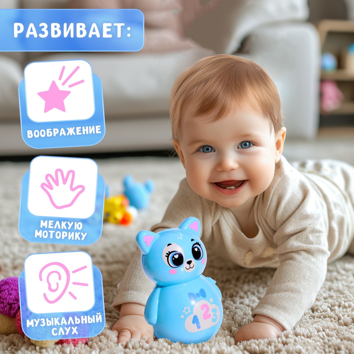Игрушка-неваляшка развивает музыкальный слух, мелкую моторику рук и воображение.