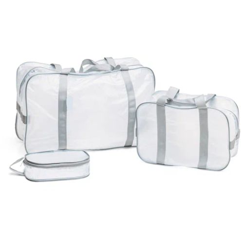 Набор из трех удобных, надежных, прозрачных сумок в роддом, в которых можно разместить все необходимые вещи для мамы и малыш. Сделаны из сертифицированной морозоустойчивой ПВХ-пленка. Полностью соответствуют требованиям Минздрава РФ. Имеют усиленные боковые стороны, прочные ручки. Максимальный вес нагрузки 3,5 кг.
