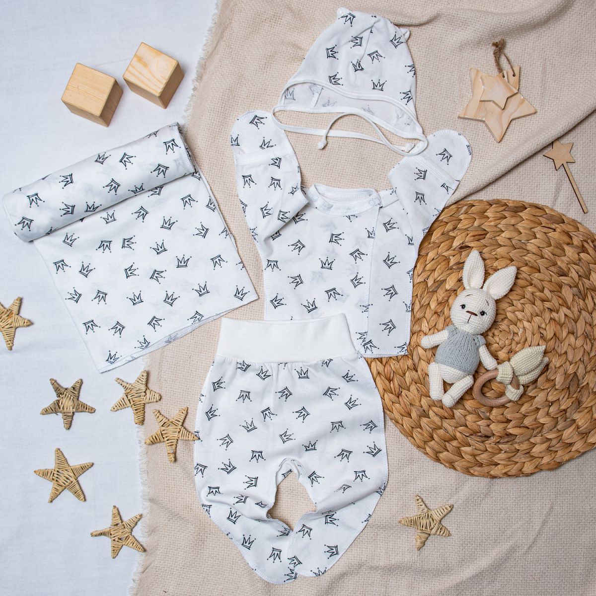 Комплект выполнен из 100% хлопка, подходит для выписку, прогулки или просто для ежедневной носки!