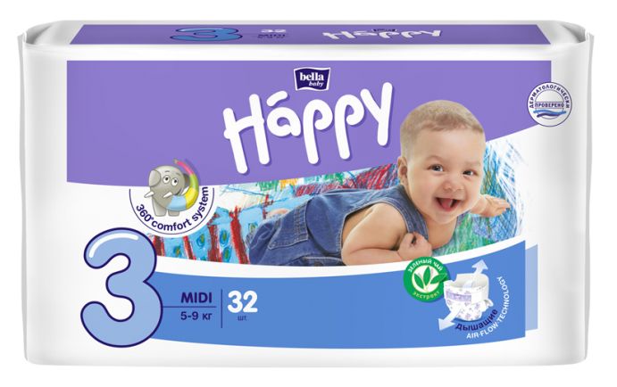 Подгузники ХЭППИ MIDI от 5-9 кг 32 шт