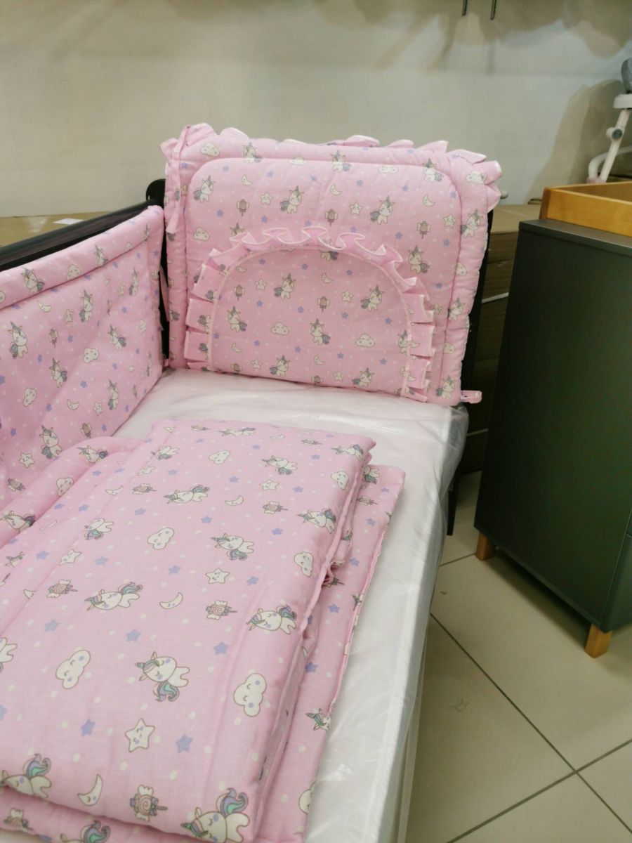 Защитный бортик необходимая вещь для детской кроватки, т.к. защищает припадении от ударов о стенки кровати, а также обеспечивает дополнительную шумоизоляцию, когда ребенок спит.