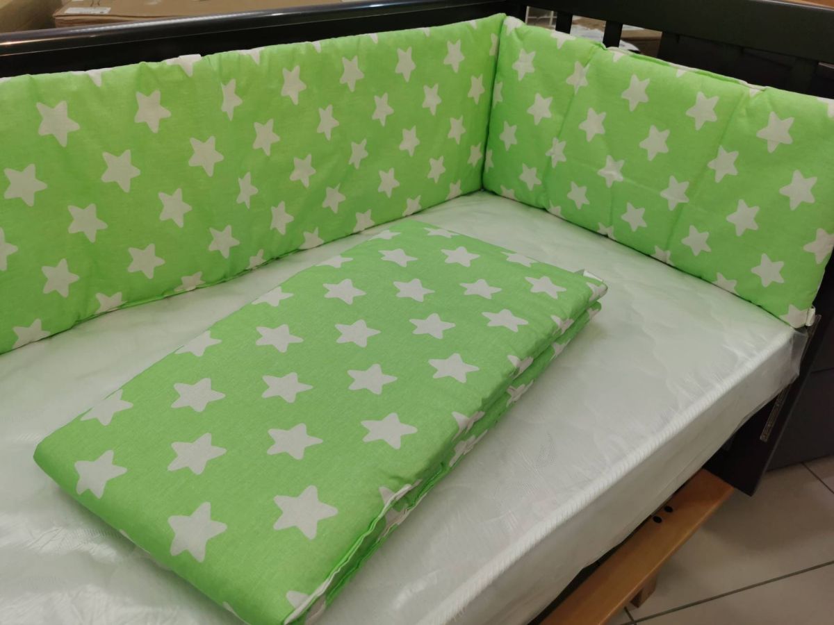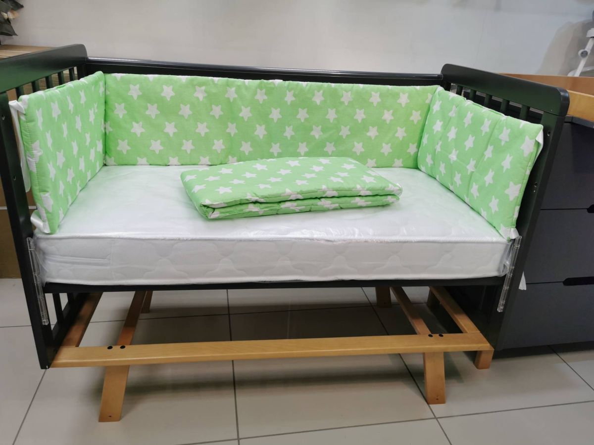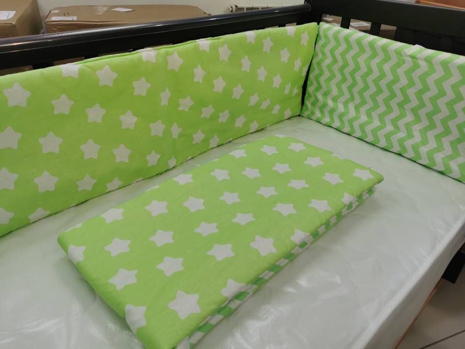 Защитный бортик необходимая вещь для детской кроватки, т.к. защищает при падении от ударов о стенки кровати, а также обеспечивает дополнительную шумоизоляцию, когда ребенок спит.