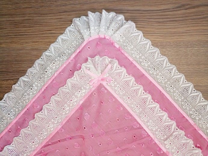 Уголок на выписку из роддома розовый с двойным кружевом 110*80 для девочки