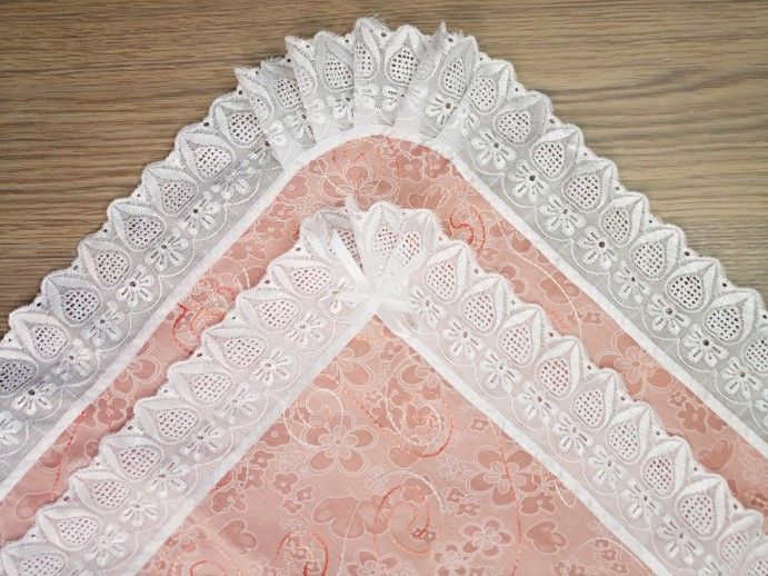 Кружевной (нарядный) уголок – это пеленка, украшенная кружевом или вышивкой. В нее заворачивают младенца перед тем, как положить его в конверт или одеяло для выписки из роддома. Кружевной уголок пеленки остается нснаружи, чтобы закрыть личико малыша от непогоды или лишних взглядов.