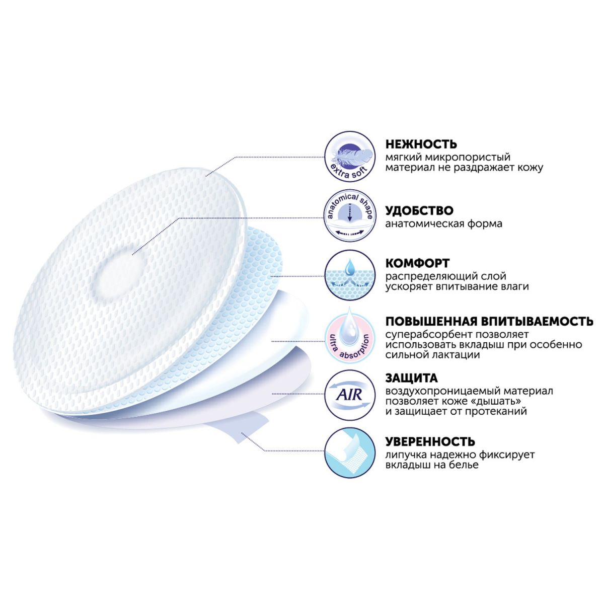- Липучка позволяет фиксировать вкладыш на белье.